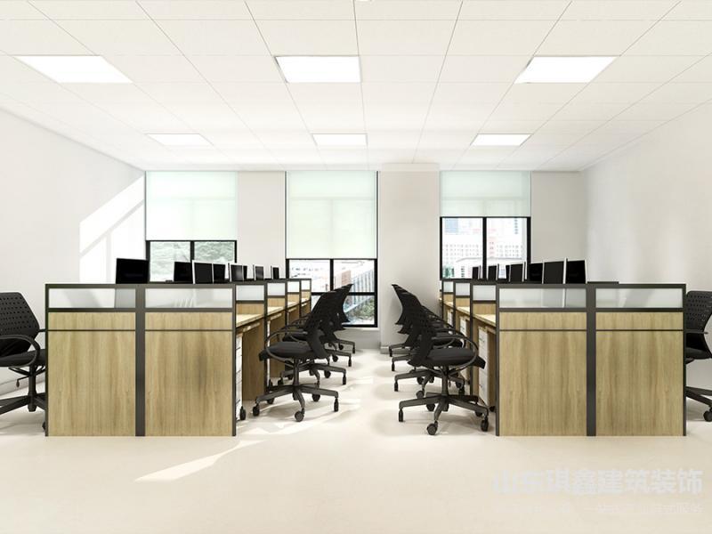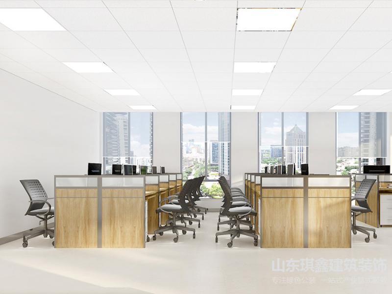 設(shè)計說明:本案以“明亮、舒適、高效”為設(shè)計理念,旨在為濟(jì)南市房產(chǎn)繪測研究院辦公室打造一個充滿活力與效率的工作環(huán)境。通過充分利用自然光和明亮的色彩搭配,營造出愉悅、開放的氛圍,提升工作效率和員工幸福感。辦公室空間被設(shè)計成開放式布局,以促進(jìn)團(tuán)隊合作和信息共享。首先是接待區(qū),采用簡約而現(xiàn)代的設(shè)計風(fēng)格,提供舒適的等候區(qū)域。主辦公區(qū)域設(shè)有個別的工作站,配備了功能齊全的辦公家具和現(xiàn)代化的辦公設(shè)備。會議室位于辦公區(qū)的中心位置,便于團(tuán)隊成員之間的溝通與協(xié)作。明亮的色彩是整個設(shè)計的核心。白色是主導(dǎo)色調(diào),與清新的藍(lán)色和綠色相搭配,營造出清新、舒適的氛圍。同時,通過運(yùn)用木質(zhì)元素和少量金屬質(zhì)感,增添了一絲現(xiàn)代感和溫暖感,使整個空間更加具有人情味。