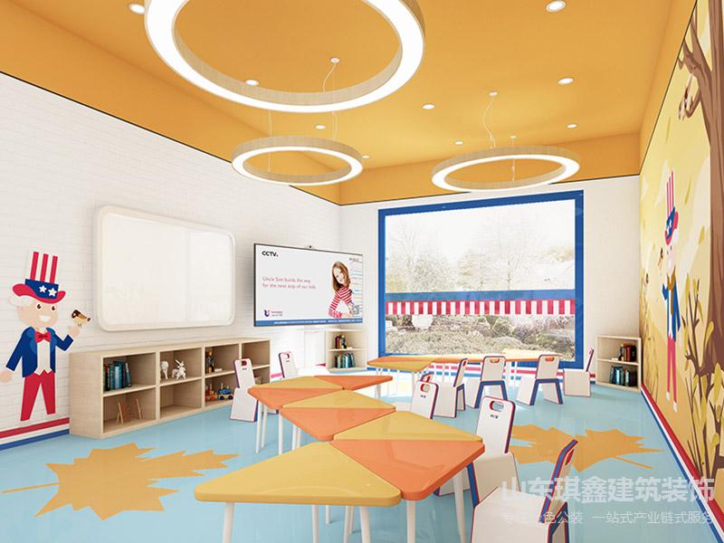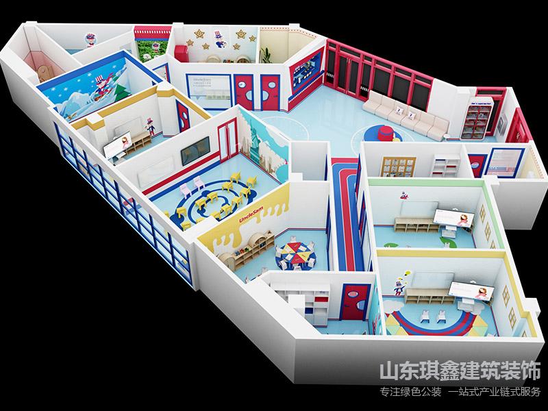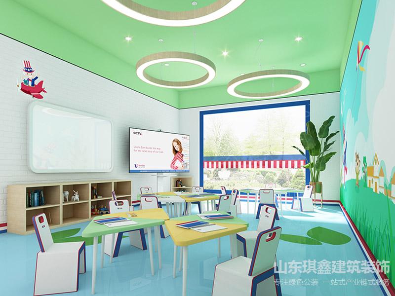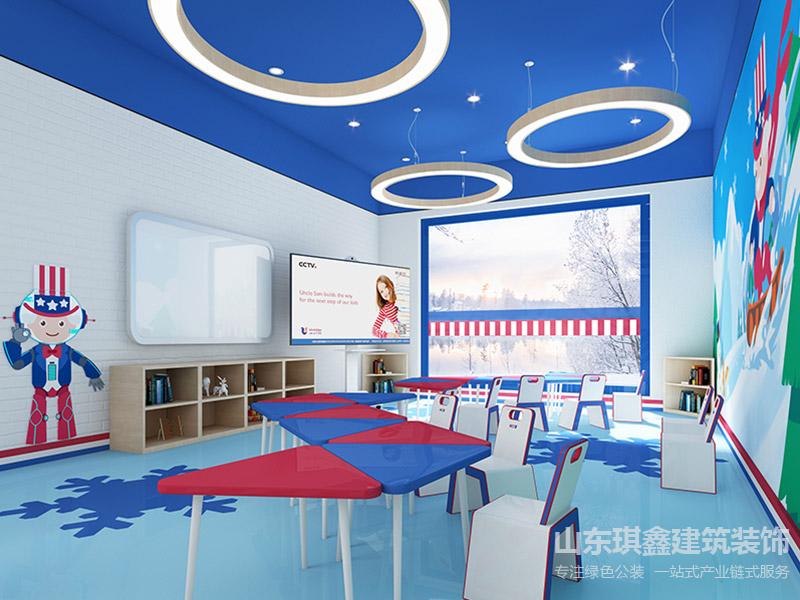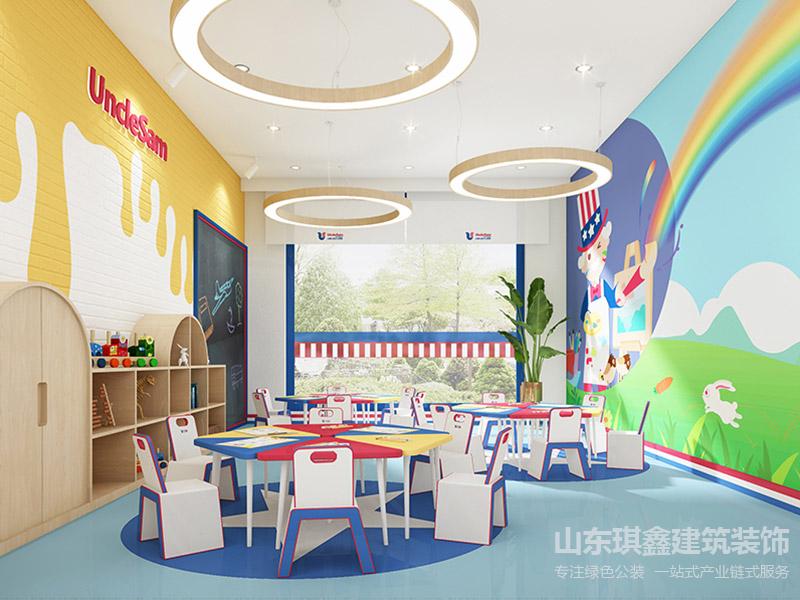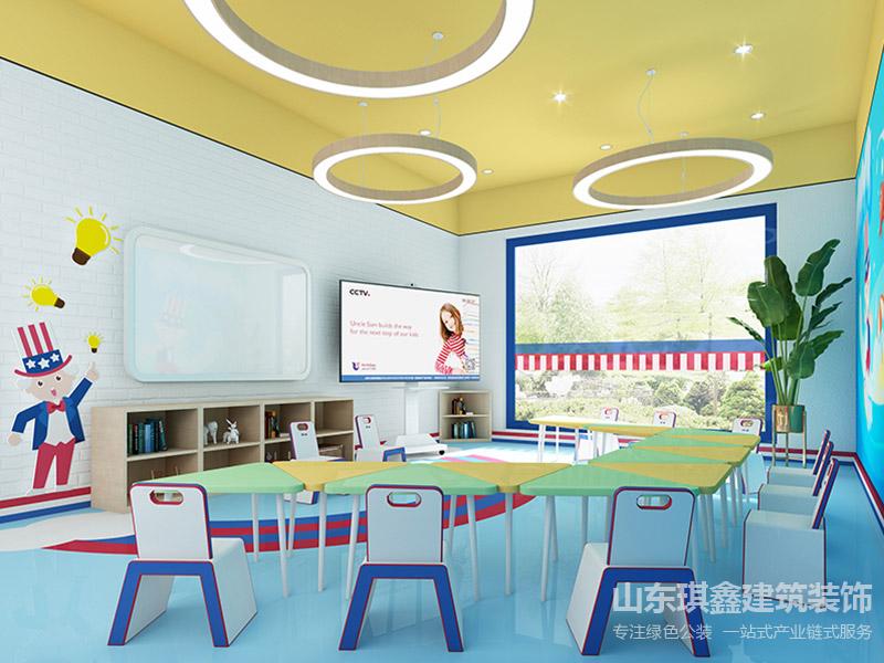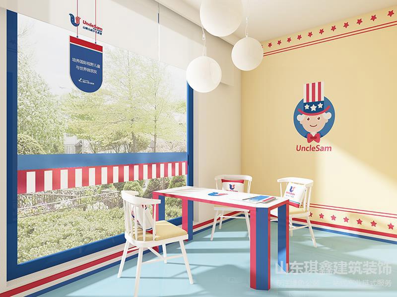 山姆大叔少兒英語培訓機構裝修通常遵循其品牌特色和教育理念,旨在為學員創造一個溫馨、專業且富有啟發性的學習環境。以下是對山姆大叔少兒英語培訓機構裝修的一些要點概述:色彩搭配:采用溫馨、明亮的色彩搭配,如藍色、綠色等自然色調,營造積極向上的學習氛圍。色彩的選擇應符合兒童的審美和心理特點,激發他們對學習的熱情和好奇心。 空間布局:注重空間的開放性和靈活性,確保每個區域都能滿足不同的教學需求。教室布局應便于師生互動和小組合作,同時設置足夠的活動空間供學員進行游戲和實踐活動。 安全環保:在裝修材料的選擇上,應優先考慮環保、無毒、無害的材料,確保學員的健康安全。同時,家具和設施的邊角應做圓滑處理,避免學員在活動中受傷。