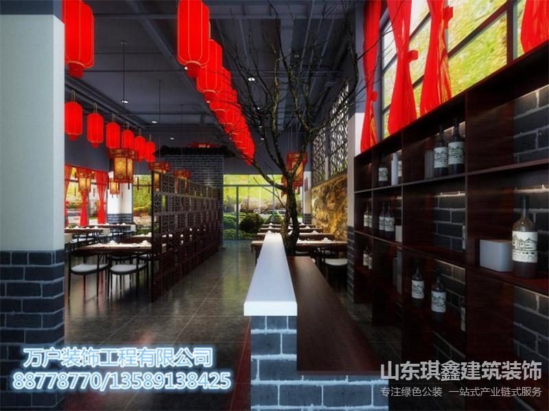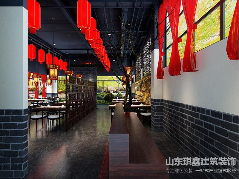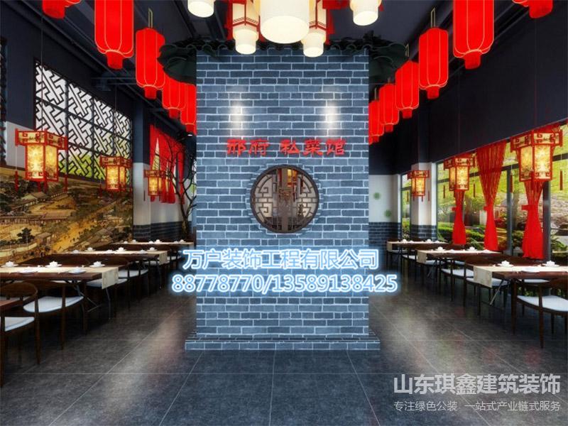 設計說明:在長清邢府私房菜的裝修設計中,設計師追求的是將傳統的中國風格與現代的生活方式相融合,為顧客創造一個富有文化底蘊和舒適氛圍的用餐環境。首先,從家具布置上,設計師選擇了木制家具,這不僅符合中國傳統家居的特點,更增添了一份自然與樸實之美。木質家具的色澤和紋理賦予了整個空間一種溫暖和親切感,讓顧客能夠在用餐的同時感受到家的溫馨。為了營造濃郁的中國風情,設計師在窗簾選擇上采用了紅色的燈籠窗簾。紅色在中國傳統文化中象征著喜慶和吉祥,而燈籠則是中國傳統節日和慶典的標志之一,因此紅色燈籠窗簾不僅為空間增添了一抹熱烈和歡樂,也讓顧客在用餐時仿佛置身于節日的氛圍中。整體而言,長清邢府私房菜的裝修效果體現了設計師對中國傳統文化的尊重與發揚。通過木制家具、紅色燈籠窗簾等元素的巧妙搭配,打造出了一個既具有現代生活品質,又充滿中國傳統風情的用餐空間,為顧客帶來了一次身心愉悅的用餐體驗。