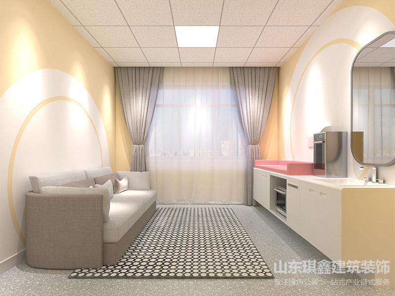 個性化的色彩體系。結合色彩心理學,整體室內色彩以莫蘭迪燕麥和粉橘色為主,串聯各個功能科室,空間功能和交通流線,突出婦幼醫院的個性化特征。同時不同功能空間也各有特性,兒童空間點綴黃綠色,中醫空間多用冷咖色,體檢空間強調低飽和豆綠色。